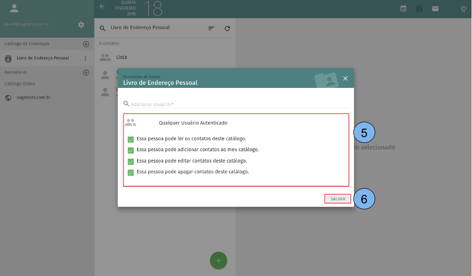Configurar permissões de acesso de um usuário especifico aos catálogos de endereços.