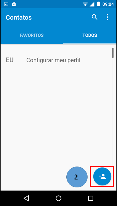 As telas abaixo mostram como adicionar contatos em dispositivos Android. Abra o aplicativo de contatos do seu dispositivo (1).