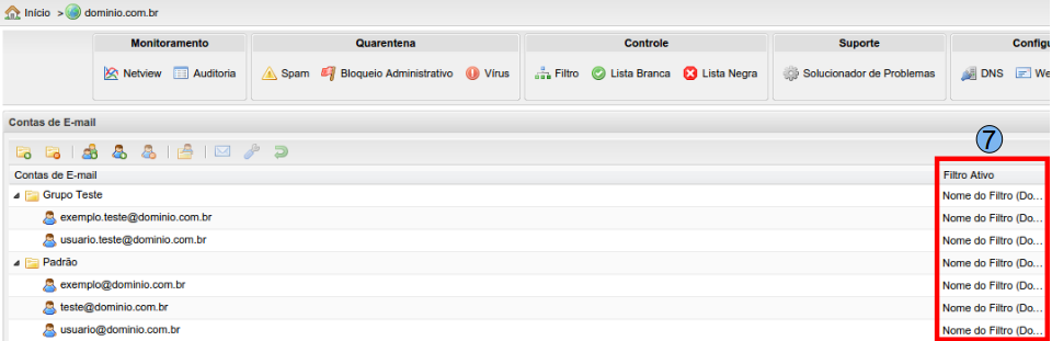 Após salvar o filtro, veja na opção “Filtro Ativo” (7) que o mesmo foi aplicado para todos os usuários.