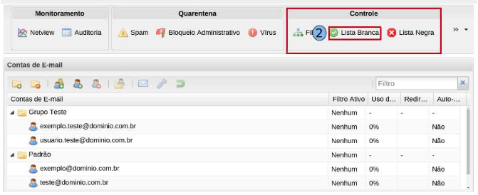 Na guia “Monitoramento”, clique em opção “Lista Branca” (2).
