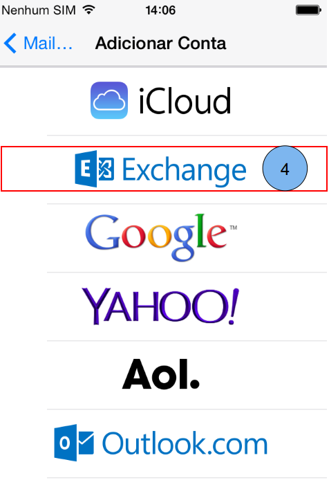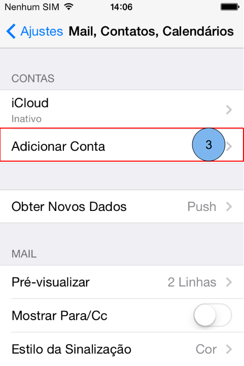 Na próxima tela clique em “Mail, Contato, Calendários” (2).