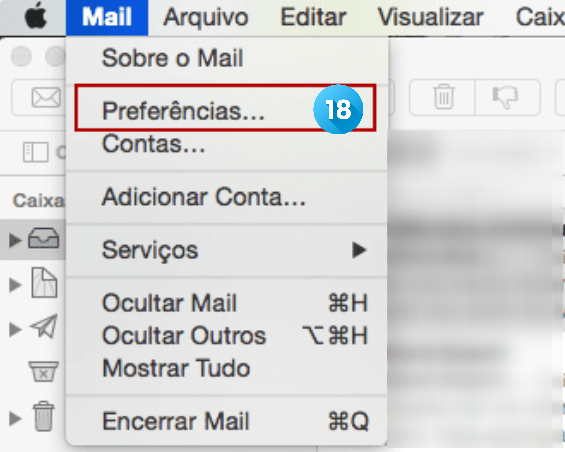 Para isso, selecione o menu Mail e clique em Preferências.   18