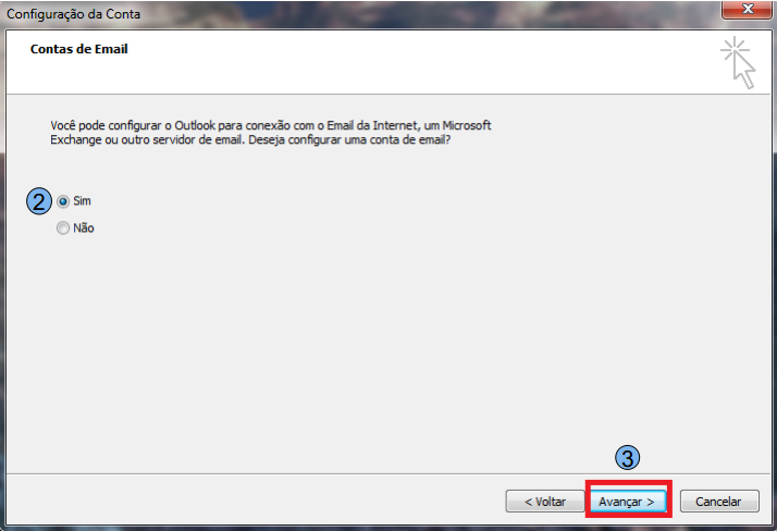 Clique na opção Sim (2) e em seguida Avançar (3).