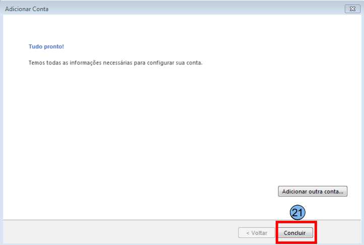 Clique em Concluir (21) e sua configuração estará concluída com sucesso.