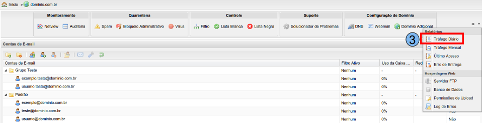 Clique na opção “Tráfego Diário” (3).