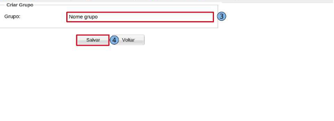 Em criar “Criar Grupo”, na guia “Grupo” (3) escreva o número do grupo desejado e clique em “Salva”(4).